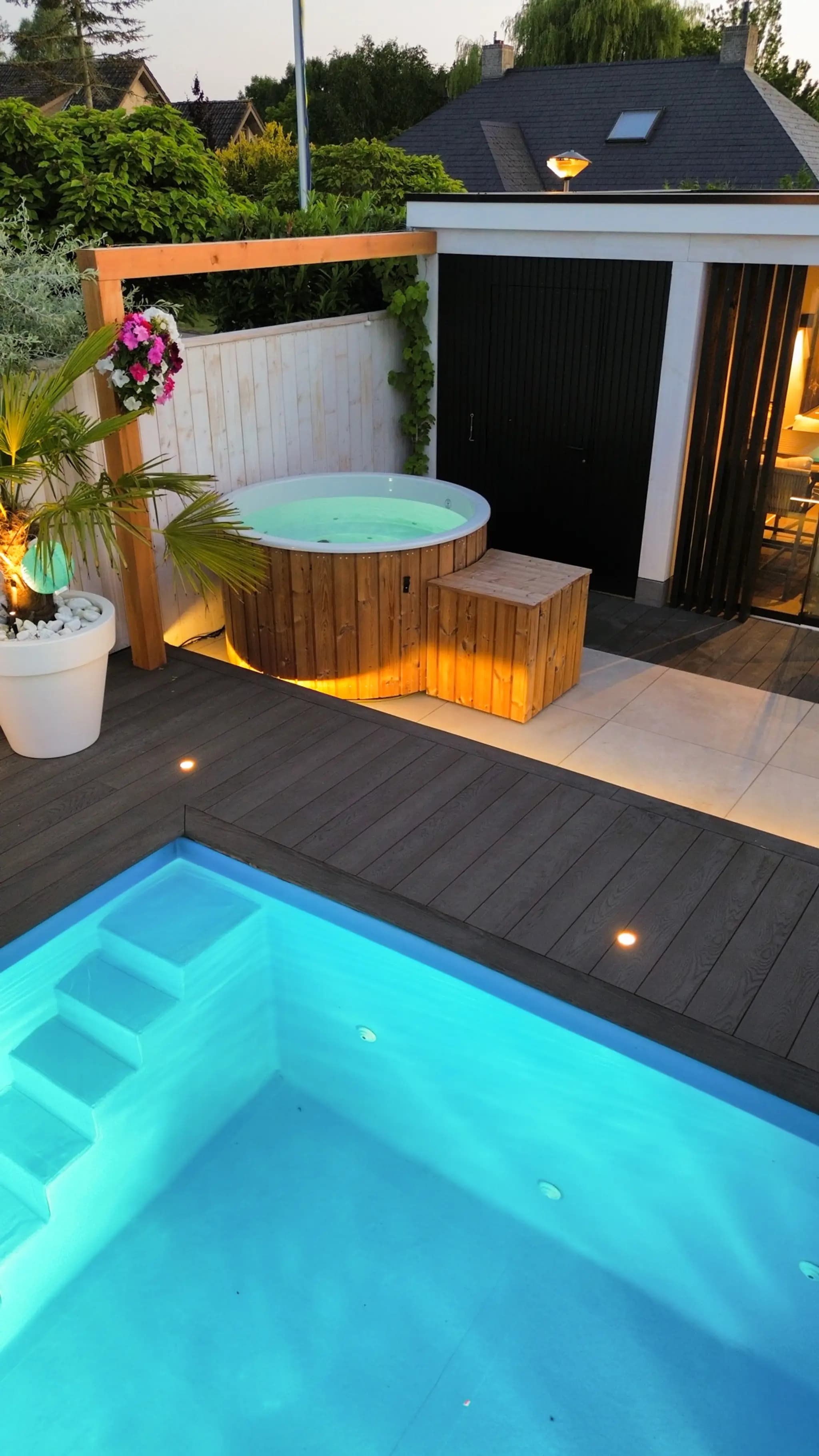 Deze buitenruimte is ontworpen met oog voor balans tussen functionaliteit en esthetiek. Strakke lijnen en slimme zichtlijnen zorgen voor een open en ruimtelijk gevoel. De verschillende zones – loungen, dineren, wellness – vloeien naadloos in elkaar over, waardoor de tuin uitnodigt tot zowel ontspanning als samenzijn.